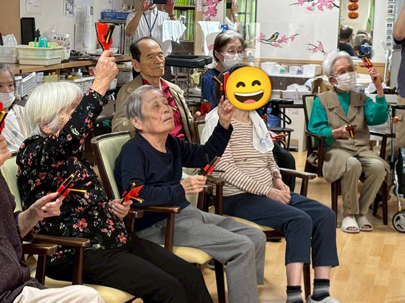 しかも、鳴子を一人ずつ配ってくださったので、皆さんも鳴子を鳴らして座りながら一緒に踊ってくださいましたよ~🙌