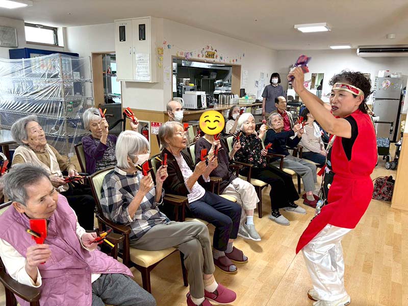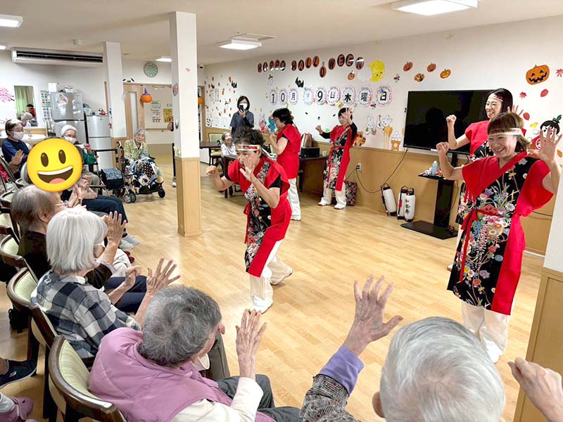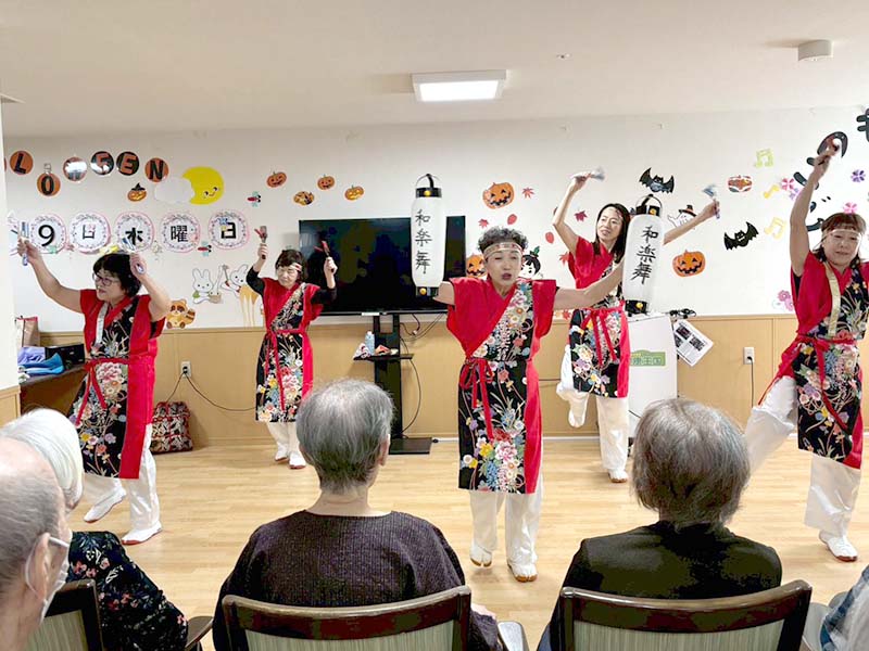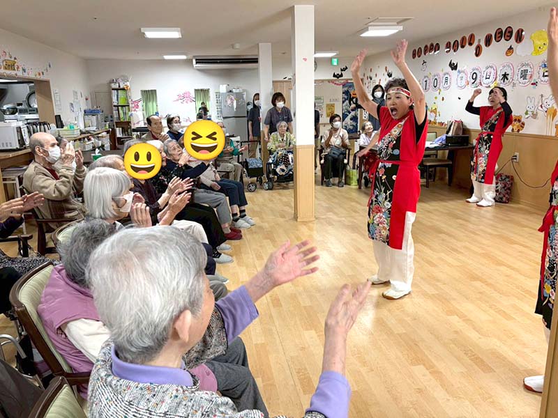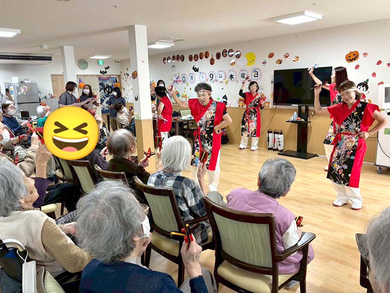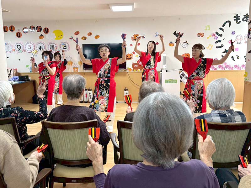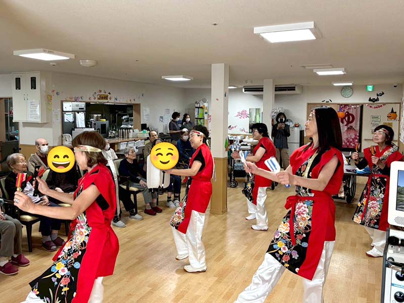 カラフルな衣装とキレのある踊りに、入居者の皆さんも思わずニコニコ😊