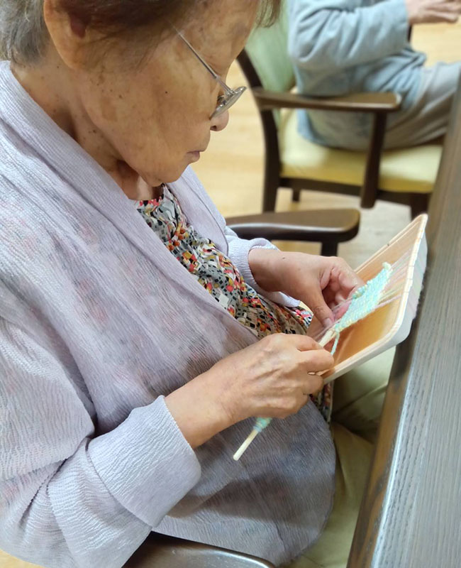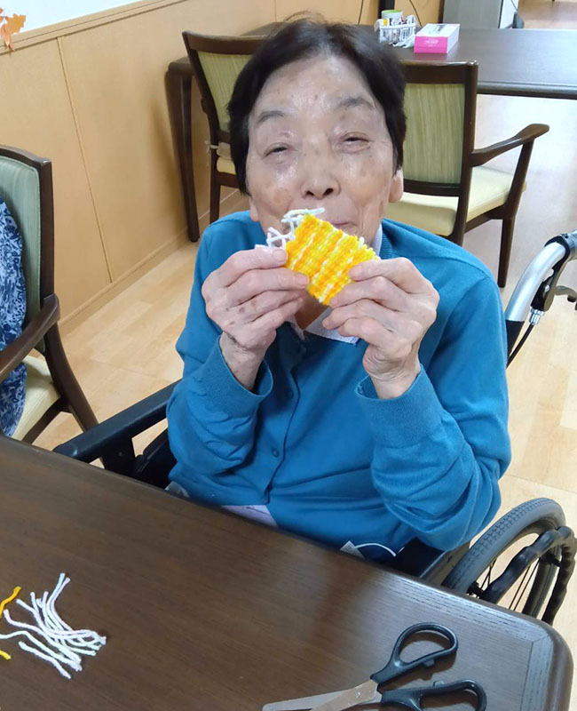 みなさん夢中になって編み進めていて、完成したときには「できた!」と嬉しそうな笑顔があちこちに😊