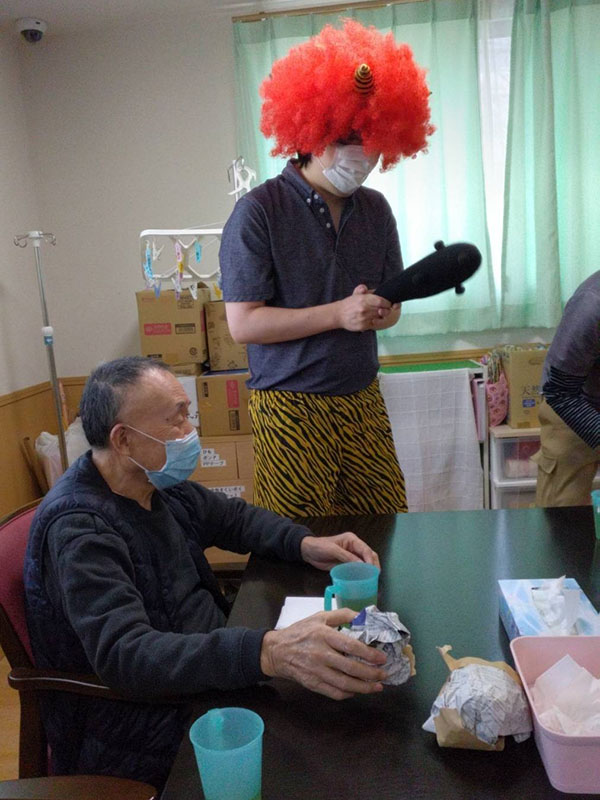 昨日、入居者様と一緒に新聞紙を丸めて準備しました~