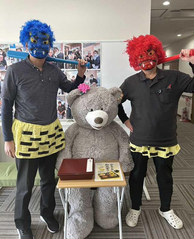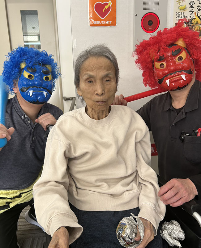 👹ささゆりの節分👹 2026 2/05 ささゆりの宿り 2026年2月5日 2026年2月5日 ささゆりにも赤鬼、青鬼と来ました! 新聞紙で丸めた豆で鬼退治だ!! 鬼が弱まってきているので、最後は職員で総攻撃~!! こうして鬼は退治されました!多くの福が皆様に来ますように!😊😊 ささゆりの宿り よかったらシェアしてね! URLをコピーしました! URLをコピーしました! 👹ばらの節分👹 第2弾 鯛の解体ショー「おもてなし松花堂ランチ」 関連記事 第2弾 鯛の解体ショー「おもてなし松花堂ランチ」 2026年2月5日 ささゆりの家庭菜園Ⅱ 第3話 2026年1月30日 ローソン移動販売 2026年1月30日 🐴2026年新年のご挨拶🐴 2026年1月4日 🎄クリスマス会🎅🏻 2025年12月26日 🧹年末大掃除🧹 2025年12月15日 ささゆりの家庭菜園Ⅱ 第2話 2025年12月5日 ささゆりの家庭菜園Ⅱ 第1話 2025年11月19日