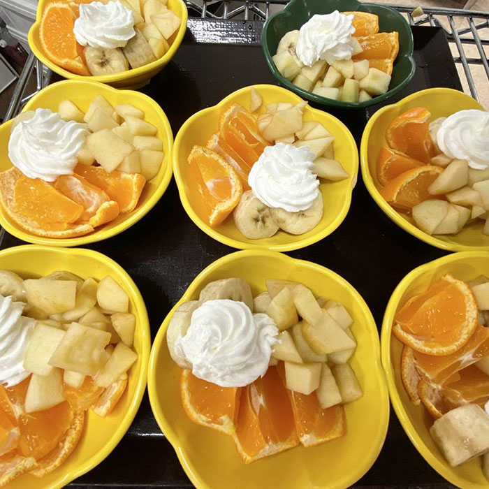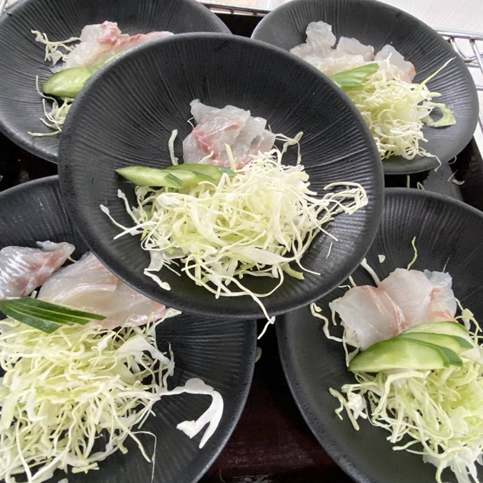 天ぷらにハンバーグ、捌きたての鯛のお造りにフルーツまで🍎
