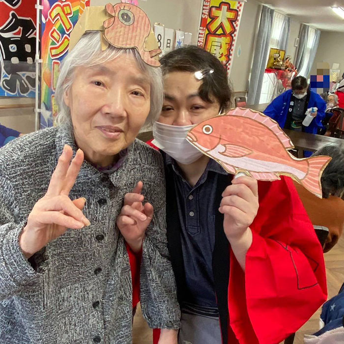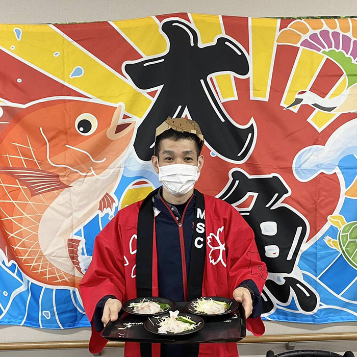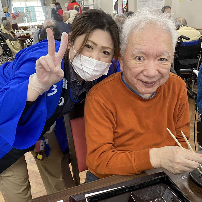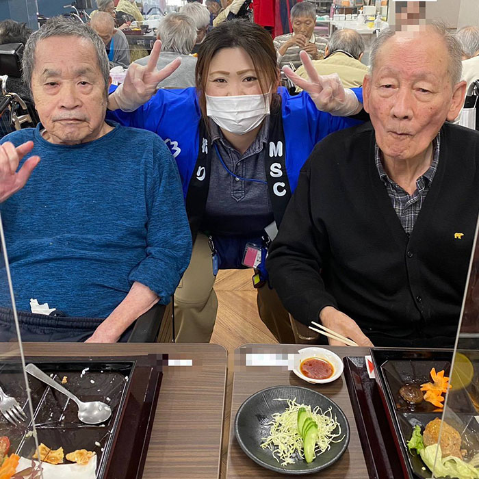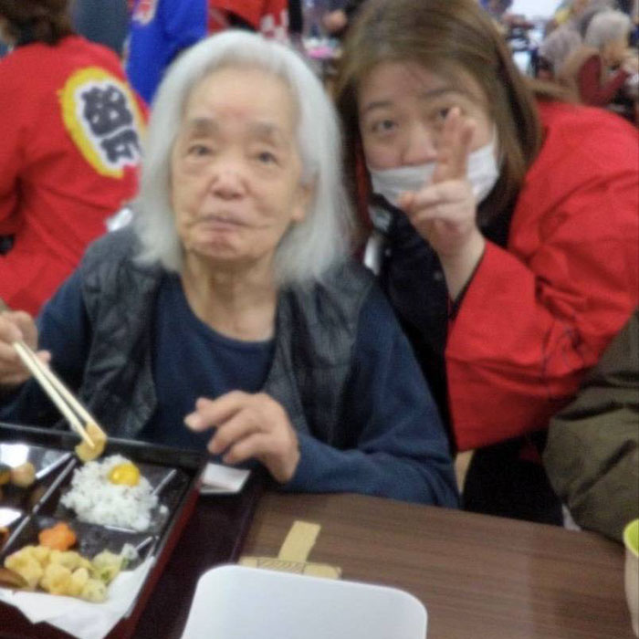 解体ショーが終わりお弁当が運ばれてきましたが「一斉に開けるのでまだ開けたらダメですよ!」とそわそわしながら待っていたら、お待ちかね!施設長の「せーの!」という声がかかりお弁当オープン🤗