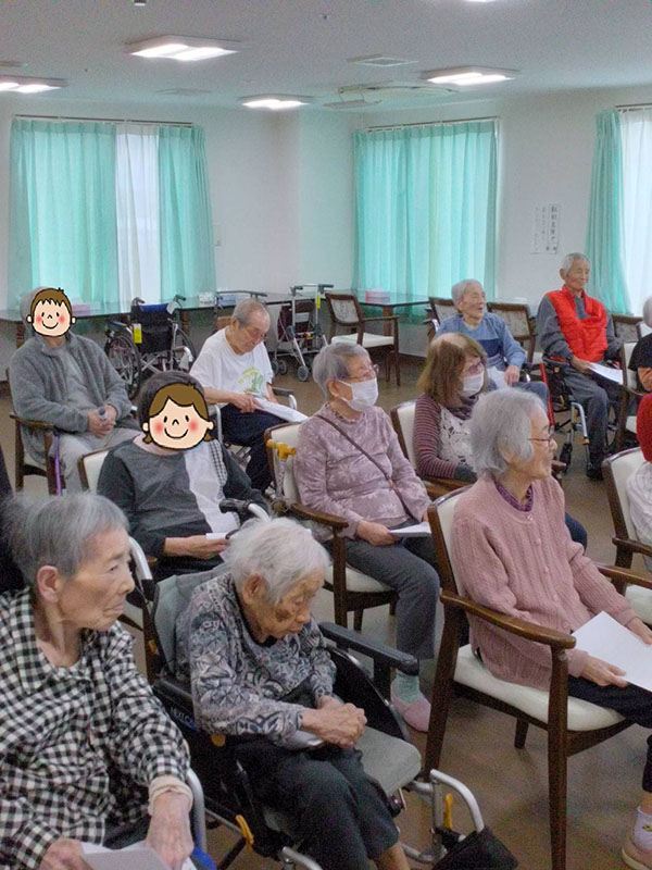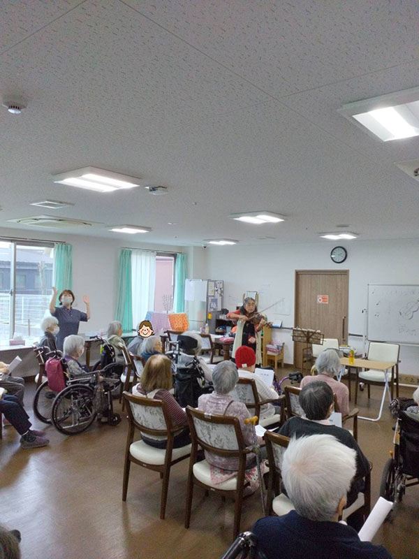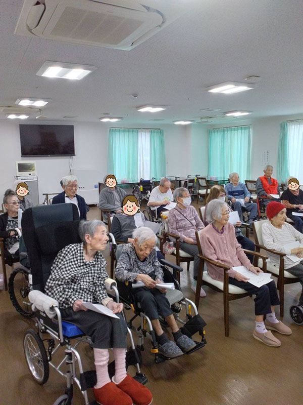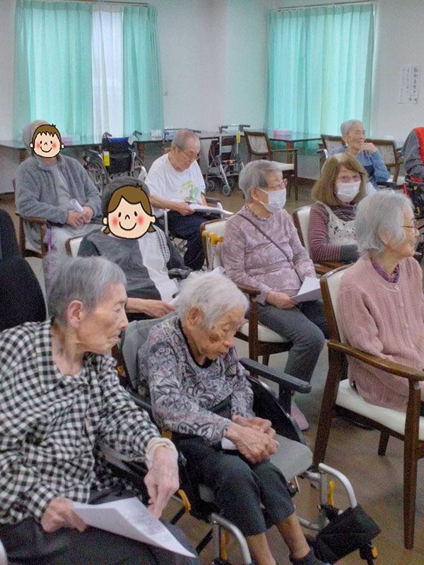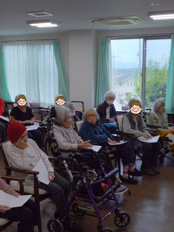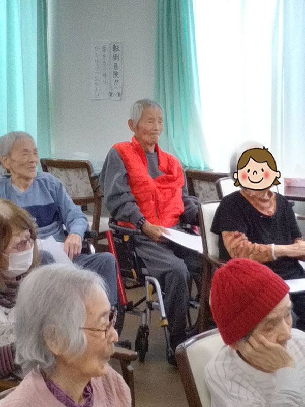 なんと!リクエスト曲「上を向いて歩こう」を即興で演奏して下さり、ご利用者様も大合唱で大盛り上がり!!