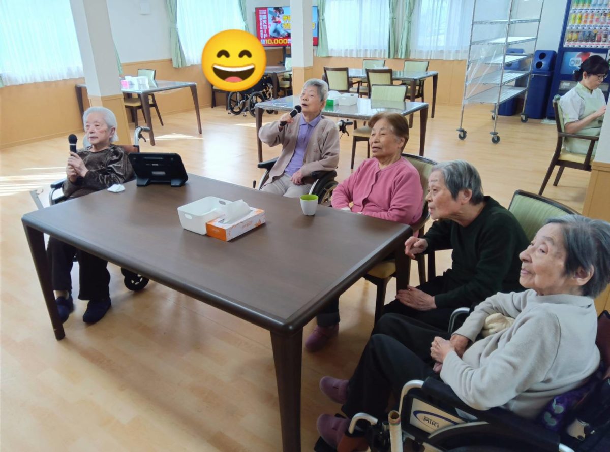 朝の体操レクの後に皆さんでカラオケレクを行いました~♪曲のリクエストを聞きながら数曲入れてカラオケスタート🎤マイクを持たれてない方も一緒に口ずさんで楽しそうに歌っておられました😊 また素敵な歌声を聞かせてくださいね~♬✨ -